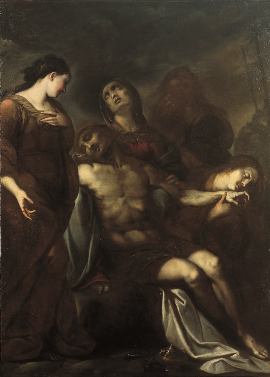 Il dipinto deve essere identificato nella pala dell’altare dell’oratorio del Luogo Pio delle Quattro Marie commissionata il 22 dicembre 1649 a Ercole Procaccini il Giovane. La tela risulta ultimata e posta in opera entro il 6 aprile 1650, quando il pittore riceve il relativo compenso, ammontante a 203 lire.