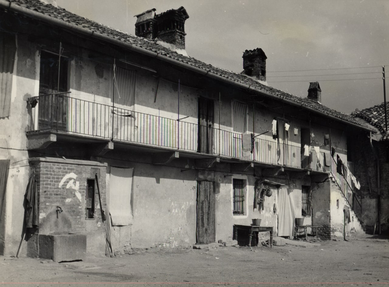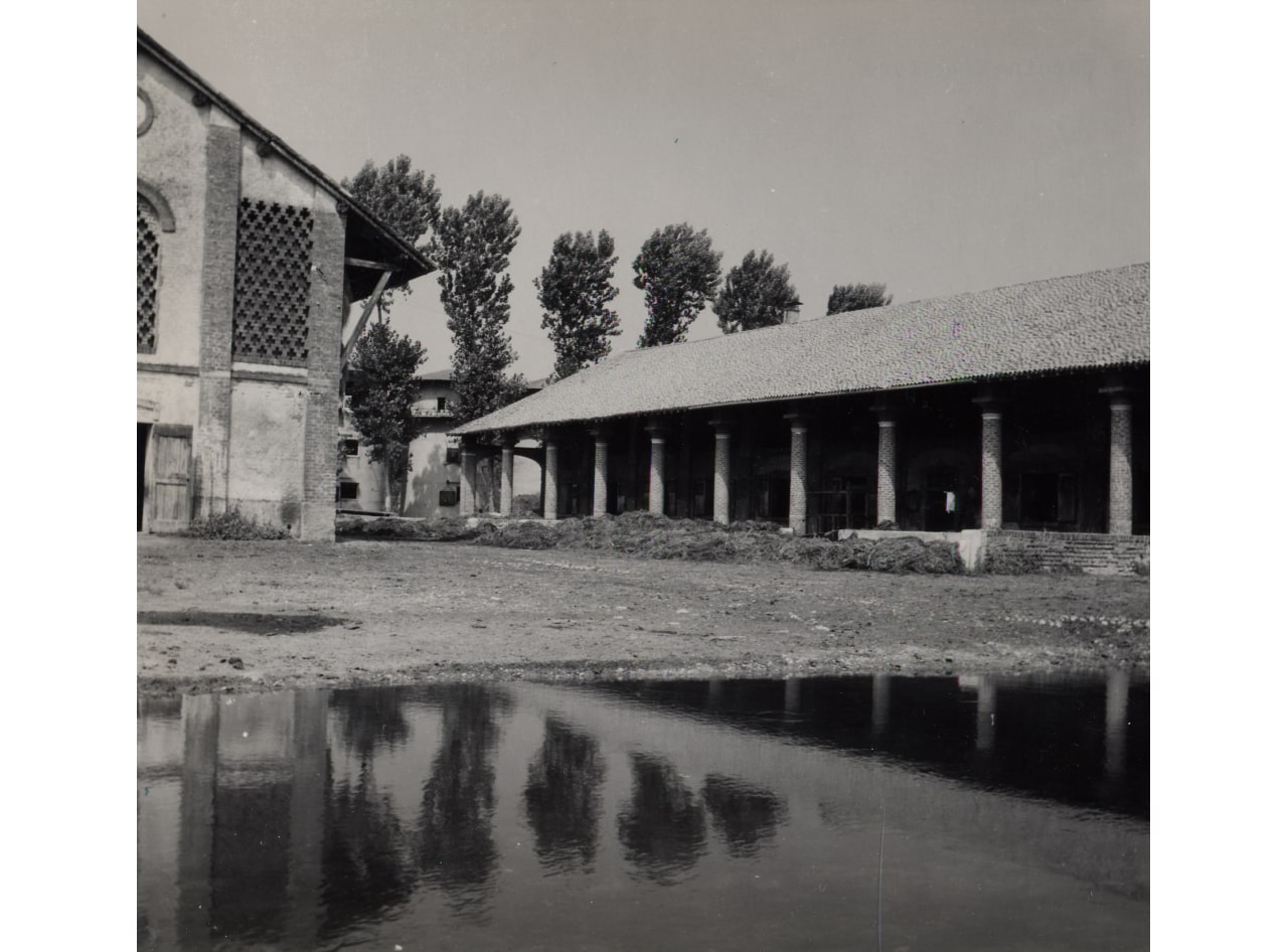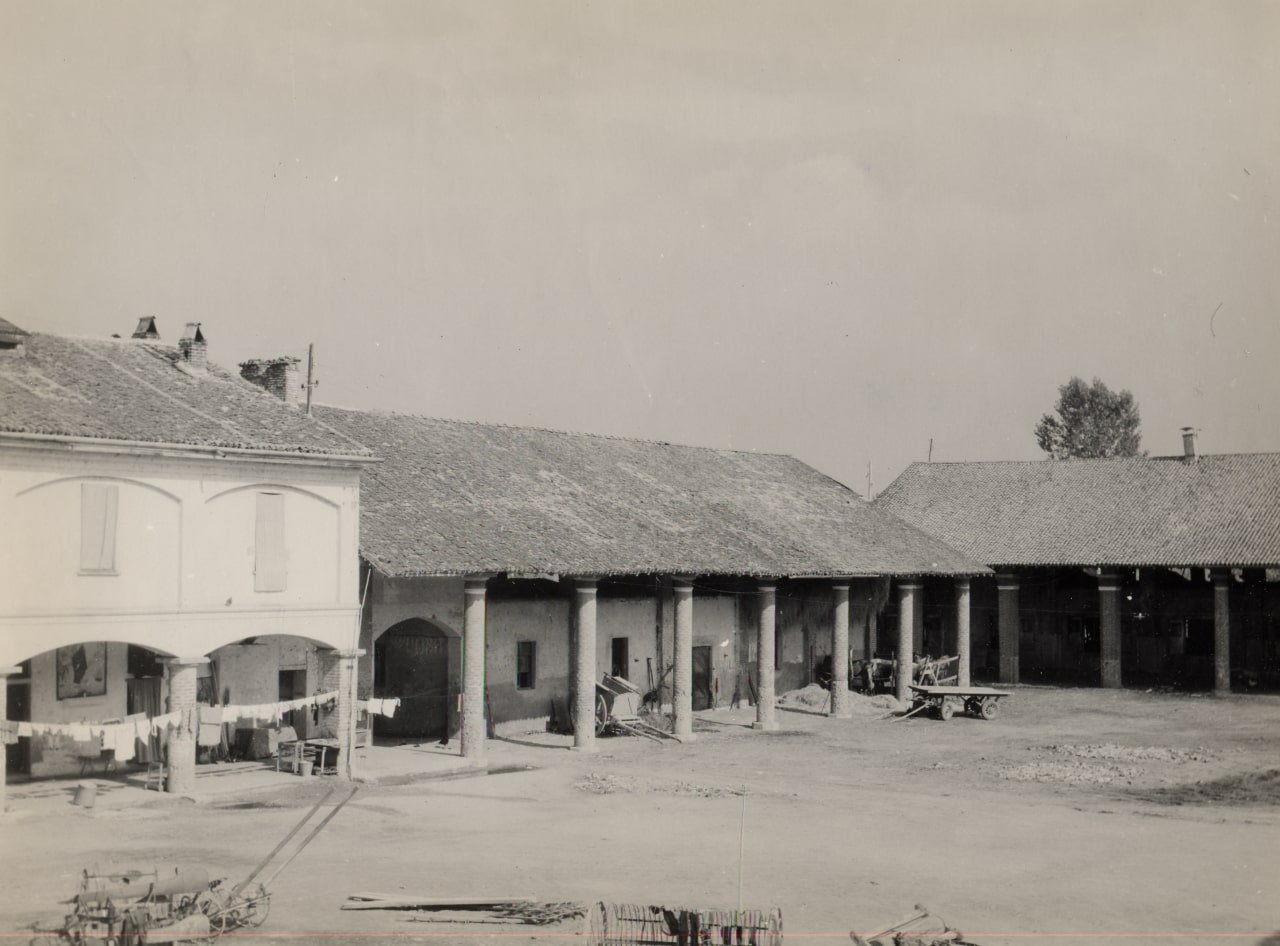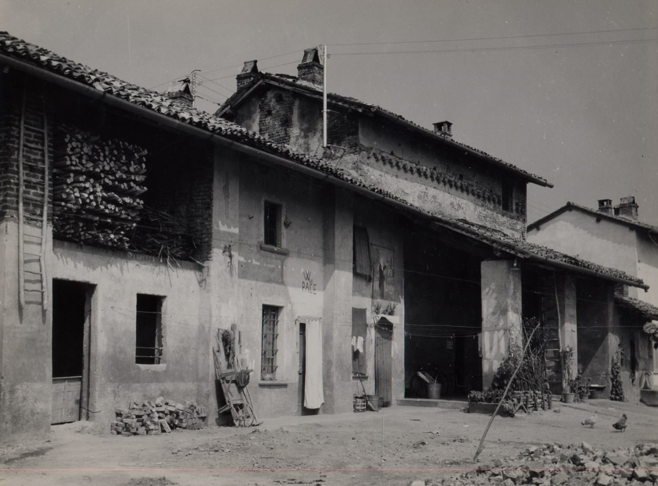 Corte del fittabile: veduta parziale di case coloniche, rustici, stallone (foto di Carlo Ciocca, 1953)