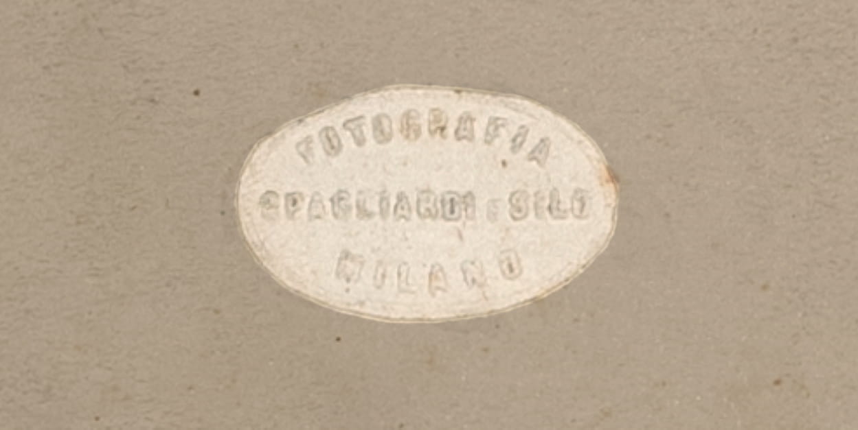Una curiosità: l’autore della fotografia e del dipinto sembrano essere la stessa persona. La prima reca infatti il timbro a secco dello stabilimento fotografico Spagliardi & Silo, attivo in Milano tra il 1865 e il 1888, i cui titolari sono identificabili nel pittore Cesare Spagliardi e in Giovanni Battista Silo, fratello di Antonio Silo, anch’egli pittore. Il secondo reca la firma dello stesso Spagliardi. Com’è noto, alle origini molti fotografi erano o erano stati in precedenza anche artisti. E non è finita, perché durante le operazioni di restauro del ritratto pittorico, attuato nel 1997, si è potuto appurare che la stesura a olio poggia su un supporto cartaceo: quasi sicuramente la stessa fotografia della benefattrice eseguita dallo studio Spagliardi & Silo.
